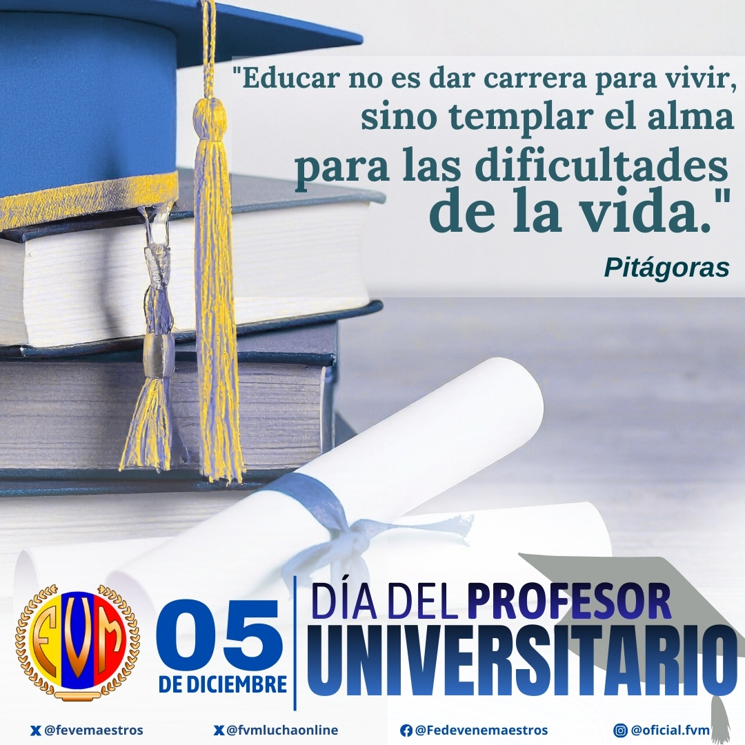 En el marco de esta conmemoración, la Federación Venezolana de Maestros y sus 27 sindicatos filiales expresa su más profundo reconocimiento a los profesores universitarios, quienes con vocación, compromiso y excelencia académica hacen posible la construcción y difusión del conocimiento. Su labor docente impulsa la innovación, la investigación y el pensamiento crítico necesarios para el avance de la sociedad.