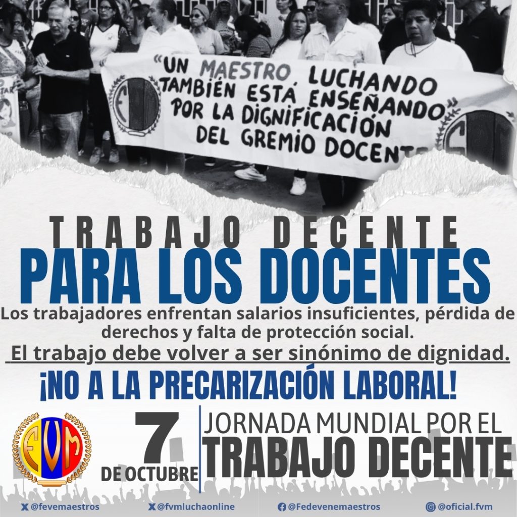 La Federación Venezolana de Maestros (FVM), como actor sindical y social, desempeña un papel clave en la promoción del trabajo decente dentro del sector educativo. Su labor incluye: