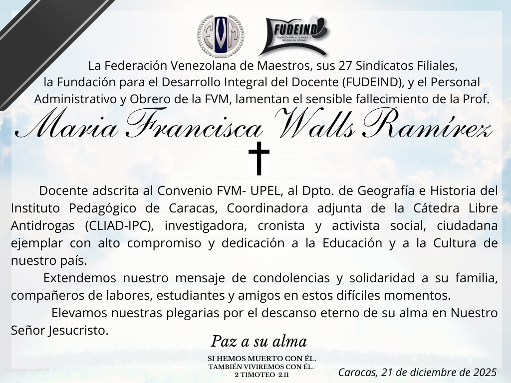 AÑO ESCOLAR 2025 – 2026 : Mensaje de la Prof.Carmen Teresa Márquez, presidente de la FVM